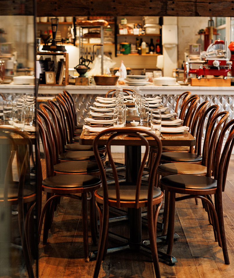 Close to the chefs at work, this intimate setting brings you into the warmth and energy of the kitchen.